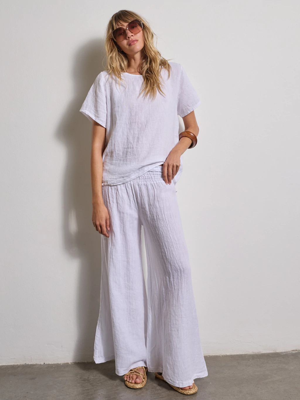 Blusa de lino manga corta confeccionada en Italia. Su diseño clásico y canchero, con botones delicados en la espalda la convierte en una prenda versátil que podes usar tanto de dia como de noche.