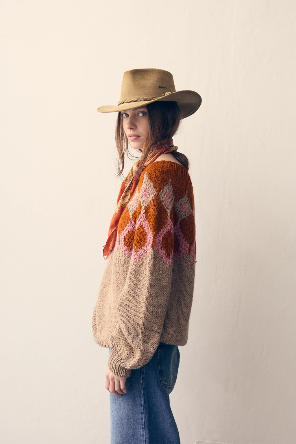 Sweater tejido a mano con lana de llama teñida con tintes naturales.