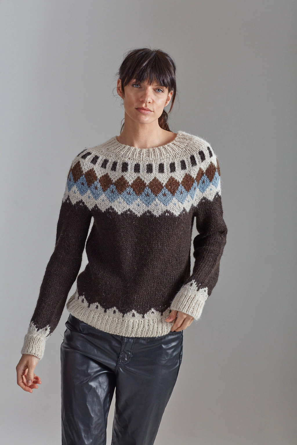 Sweater tejido a mano con lana de llama teñida con tintes naturales.
